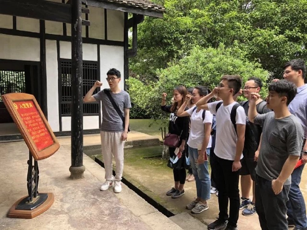 在参观完陈列馆和蔡和森故居后,支部党员同志又前往八路军驻湘通讯处旧址参观并缅怀先烈。支部书记汤鑫同志带领本班全体党员们重温了入党誓词,重燃各位党员们的革命情怀和入党初心。“作为一名当代大学生,应把红色教育转化为学习的动力,胸怀共产主义远大理想,忠诚于党的事业,爱岗敬业,积极进取,脚踏实地的做好所有工作。”汤鑫同学感慨道。