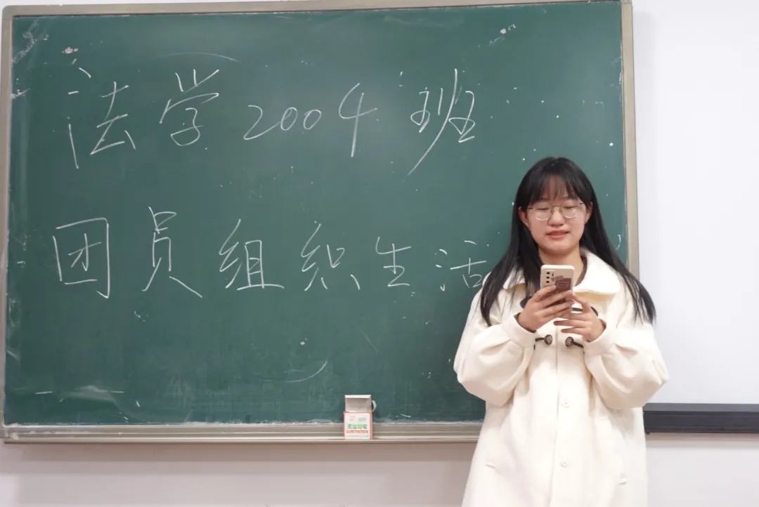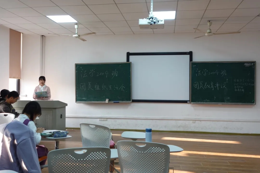 2021年11月19日,法学2004班举办团组织生活会及团员评议大会。会议由班级团支书彭敬茹主持。