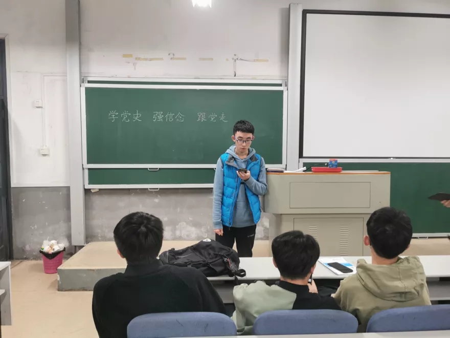 会议伊始,全体团员齐唱团歌并重温入团誓词。团支书陈翔宇以“不忘初心,继续前进”为中心,带领同学们回顾了习总书记在建党一百周年上的讲话精神。习总书记强调新时代的中国青年要以实现中华民族伟大复兴为己任,增强做中国人的志气、骨气、底气,不负时代,不负韶华,不负党和人民的殷切期望。