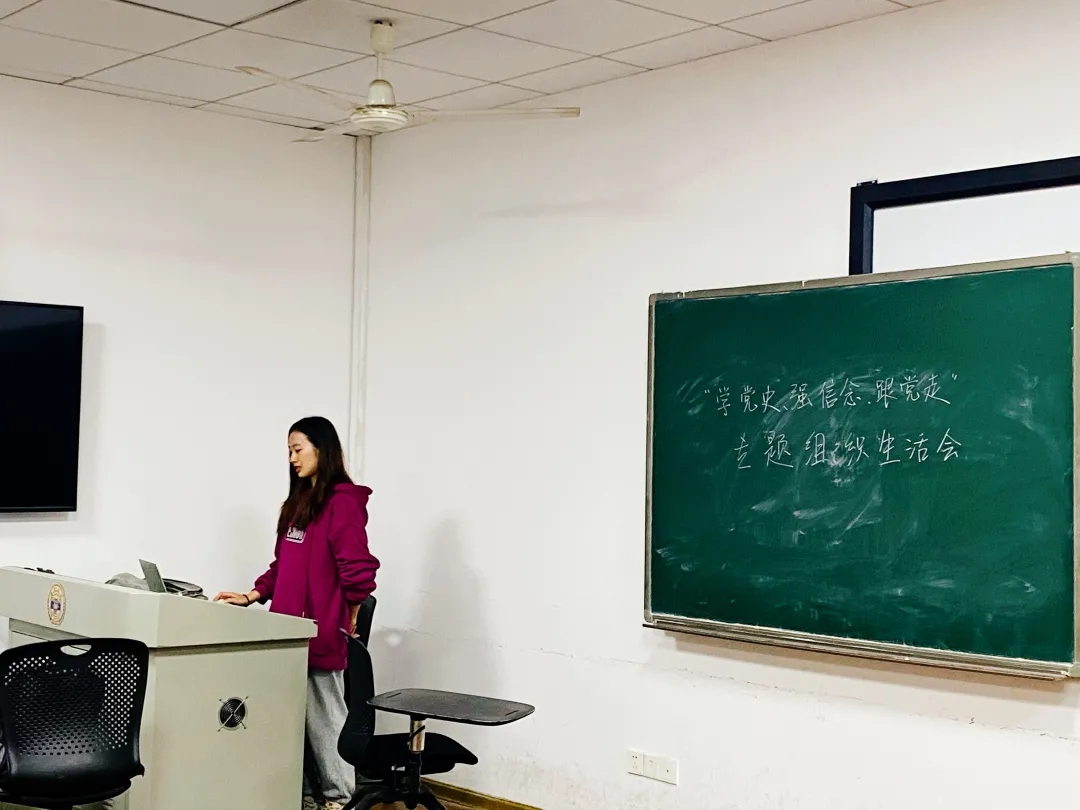 会议中团支部书记胡方舟汇报团支部党史学习的工作开展情况,特别指出学习习近平总书记“七一”重要讲话精神和组织生活会的准备情况,并结合团支部的工作以及个人实际分享心得体会。