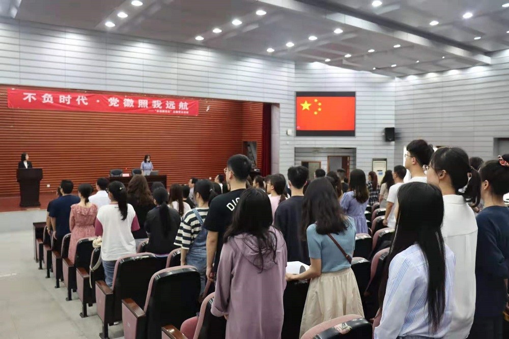 本科毕业生党员代表梁晓洁回顾了自己的入党初心以及对党和人民作出的承诺,表达了要永远保持奋斗精神、永远保持赤子之心的决心。