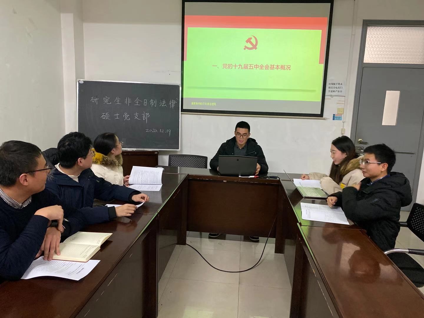 2020年10月26日至29日,党的十九届五中全会在北京举行,为深入学习十九届五中全会重要精神,研究生非全日制法律硕士党支部在学院上级党组织的指示下于2020年12月19日16:00-17:30在博彩平台