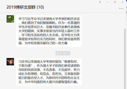 考察时提到“惟楚有材,于斯为盛”,作为湖大学子的我们更应该借助母校的优质资源,不负青春、不负韶华,努力成长为有理想、有信念、有担当、又具备创新能力的复合型人才,为新时代中国特色社会主义、为中华民族的伟大复兴贡献智慧和力量。