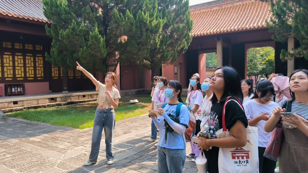 参观过程中,学姐为同学们详细地讲述了书院的历史。在段段久远的历史中,同学们深刻领悟到书院背后蕴含的历史意涵,作为中华优秀传统文化的物质载体,书院凝结的“实事求是”、“经世致用”思想深深地刻在每个人心里。