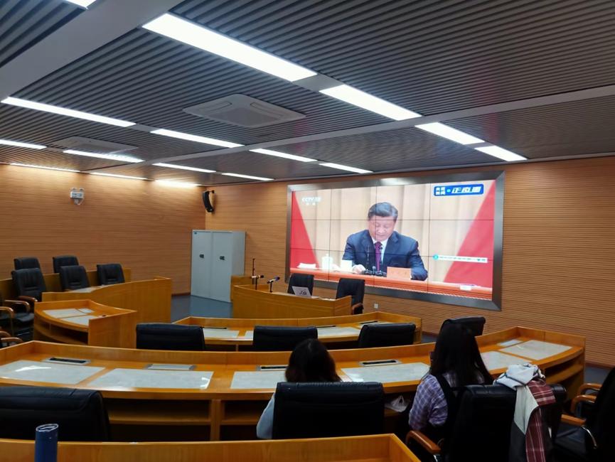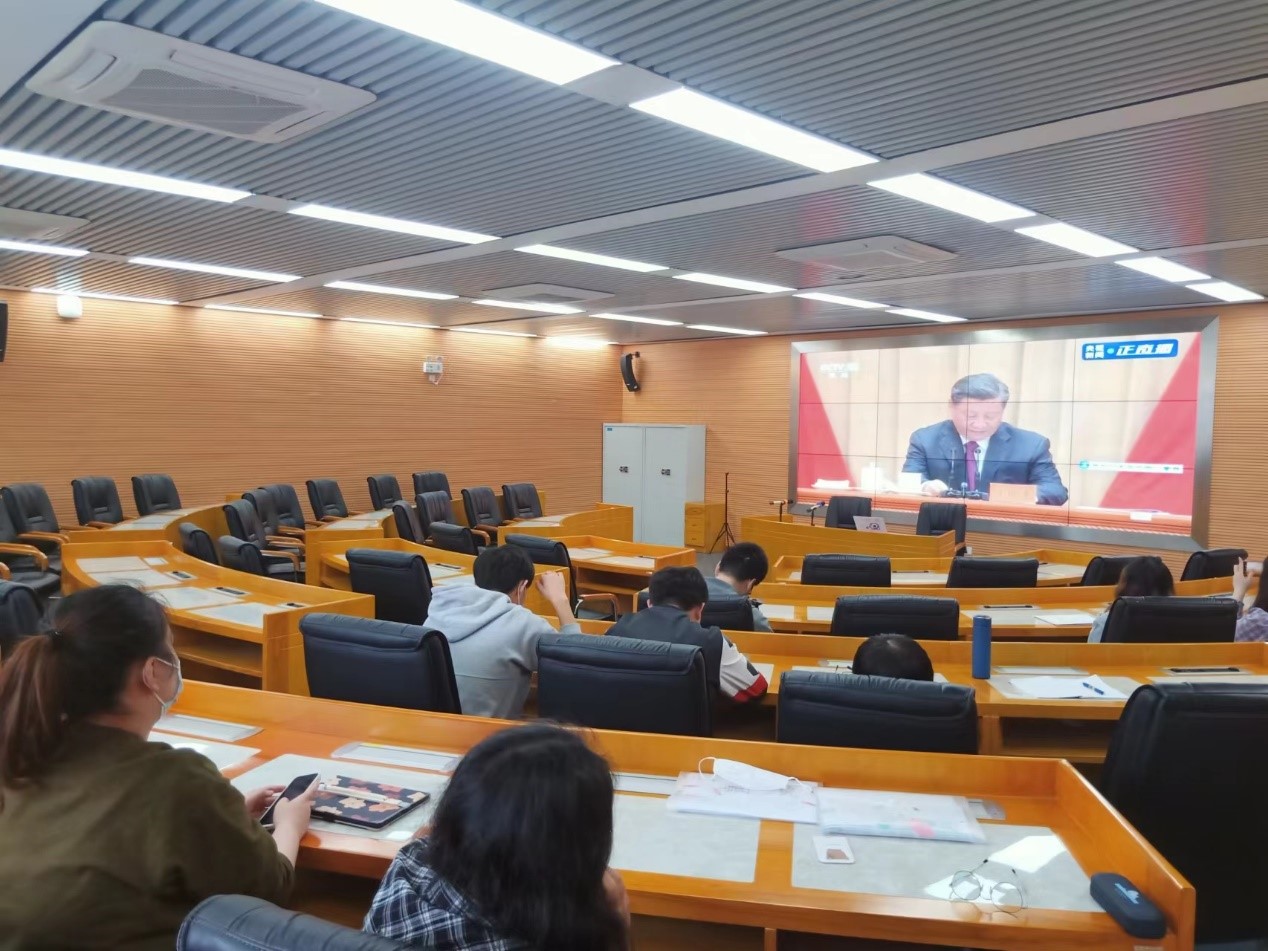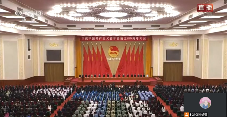 庆祝中国共产主义青年团成立100周年大会于2022年5月10日上午在北京人民大会堂隆重举行,中共中央总书记、国家主席、中央军委主席习近平出席大会并发表重要讲话。为学习习总书记重要讲话精神,博彩平台 于5月10日设置分会场组织学生代表集中观看,并以团支部为单位收看大会,大会结束后,同学们就总书记的讲话精神畅谈心得,掀起学习热潮。