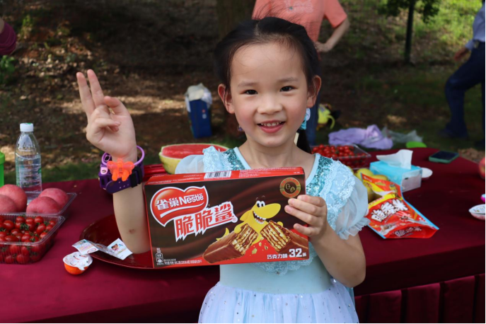 最后,我们进行了“蒙眼喂食物”游戏,参与游戏的家长与孩子都各自蒙上了眼睛,孩子站在家长的对面,听着家长的指挥将食物顺利喂进其嘴中。不仅锻炼了家长与孩子之间的默契,也让家长体验到了被孩子照顾的温馨的感觉。