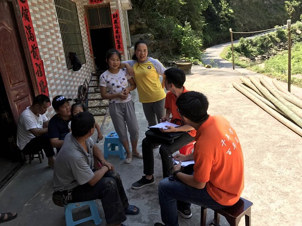 “情系脱贫攻坚”实践团第三组在邵阳市大屋瑶族乡开展调研活动,同学们在带队老师杨凯、夏航的带领下走访贫困户,并帮助当地完善精准扶贫档案和扶贫攻坚作战图。