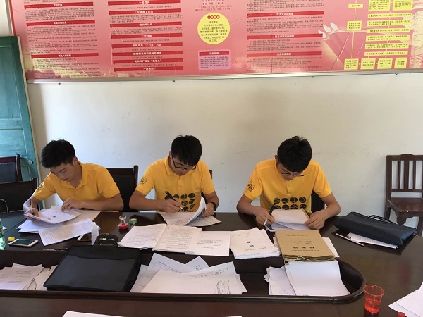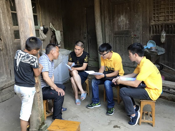 7月21日,同学们在团委书记杨凯老师的带领下进驻大屋瑶族乡大屋村。进入大屋村的第一天,师生与当地驻村工作队和村干部开展了耐心细致的座谈,大屋村有多少贫困户,每一位贫困户家中有多少人,每一个贫困户因为什么原因致贫,政府又采取了什么具体帮扶举措,调研团在村干部的介绍下对整个大屋村的基本情况有了较为详细的了解。接着,师生在驻村工作队和村干部的带领下走访贫困户。“您的主要收入来源有什么?您感觉脱贫前后自己的生活最大的变化是什么?您对政府的扶贫工作还有哪些意见和建议?”调研团真诚的问候得到的是老乡们发自内心而亲切的回答。群众们普遍对政府的扶贫工作表示满意,并提出了诸如加大对产业发展扶持力度、拓宽土特产等农产品销售市场、改善山村地区交通环境、降低医疗报销门槛等意见和建议。24日下午和25日,师生用一天半的时间帮助当地完善了64户建档立卡户的扶贫档案,对每一个细节都仔细检查,发现问题及时与村干部沟通并修正,高质量的完成了大屋村精准扶贫脱贫攻坚作战图。在调研团工作期间,大屋瑶族乡党委书记胡文伟等领导前往大屋村看望和慰问调研团师生,对调研团在大屋村的工作表示赞赏和肯定。带队老师、学院团委书记杨凯还应胡书记邀请,参加了大屋瑶族乡精准扶贫工作会议并发言。