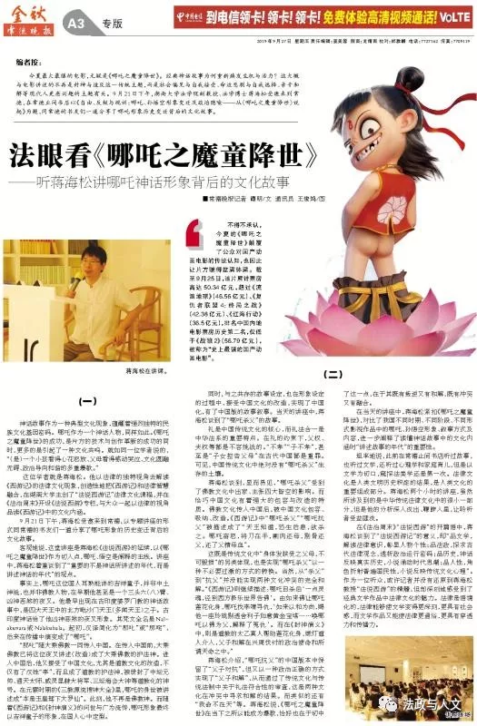 ( 《常德晚报》专版报道课程《法眼看哪吒》)
