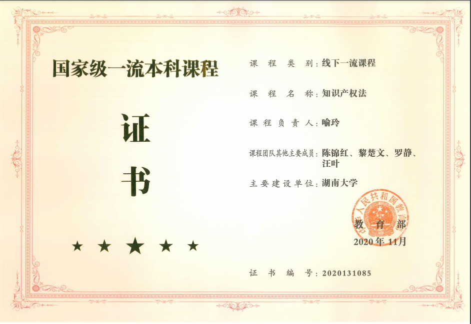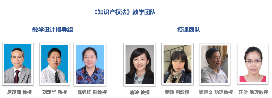 《知识产权法》是法学专业核心课程,课程授课团队由博彩平台 /知识产权研究中心喻玲教授、罗静副教授、黎楚文助理教授和汪叶助理教授等组成,教学设计指导组由屈茂辉教授、刘定华教授、陈锦红副教授等组成。教学团队与思政课教师协同合作,推进思政课程与课程思政同向同行。同时结合知识产权法课程特点和新文科建设的需要,组建跨学科专家和实务专家团队,参与教学设计和教学实施活动。