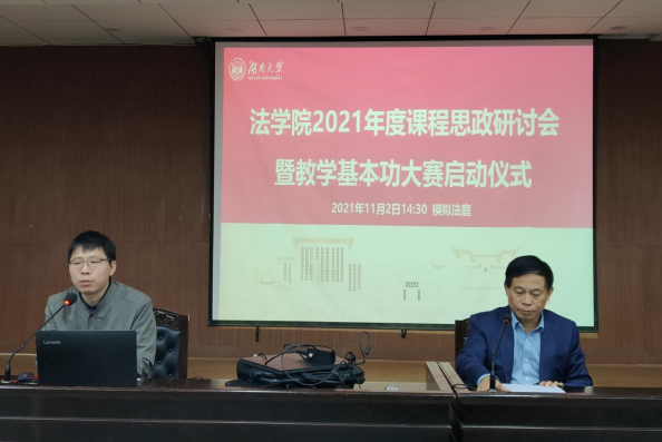课程思政研讨会暨教学基本功大赛启动仪式,全体任课教师参加会议。易骆之书记主讲“坚持立德树人、培养德法兼修的法治人才”,蒋海松副院长传达了《博彩平台