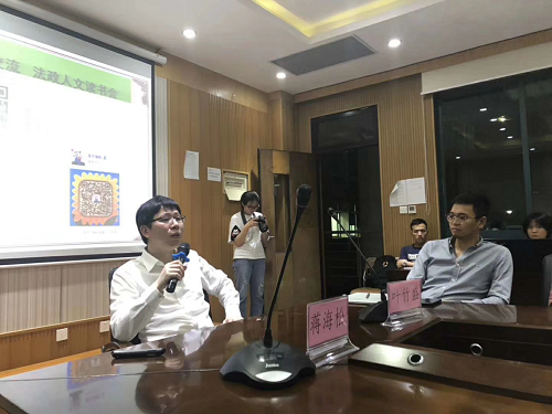 叶竹盛副教授主持了讲座。这也是蒋老师在中国大学MOOC负责的慕课《法说西游记》在全国的第四场线下翻转课堂报告会。