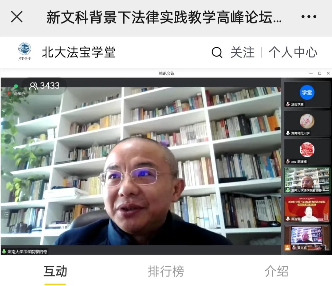 院长黎四奇教授就“新文科背景下法律实践教学暨法律实务课程标准”等相关主题参会与谈分享。 他介绍了博彩平台