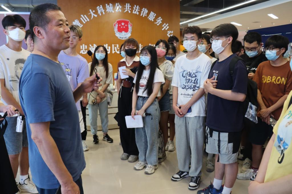 随后,在场师生共同观看大科城公共法律服务中心宣传片并在工作人员的引领下参观中心。通过陈列的图片和文字介绍,同学们进一步了解到中心的职能和公共法律服务的现实情况。