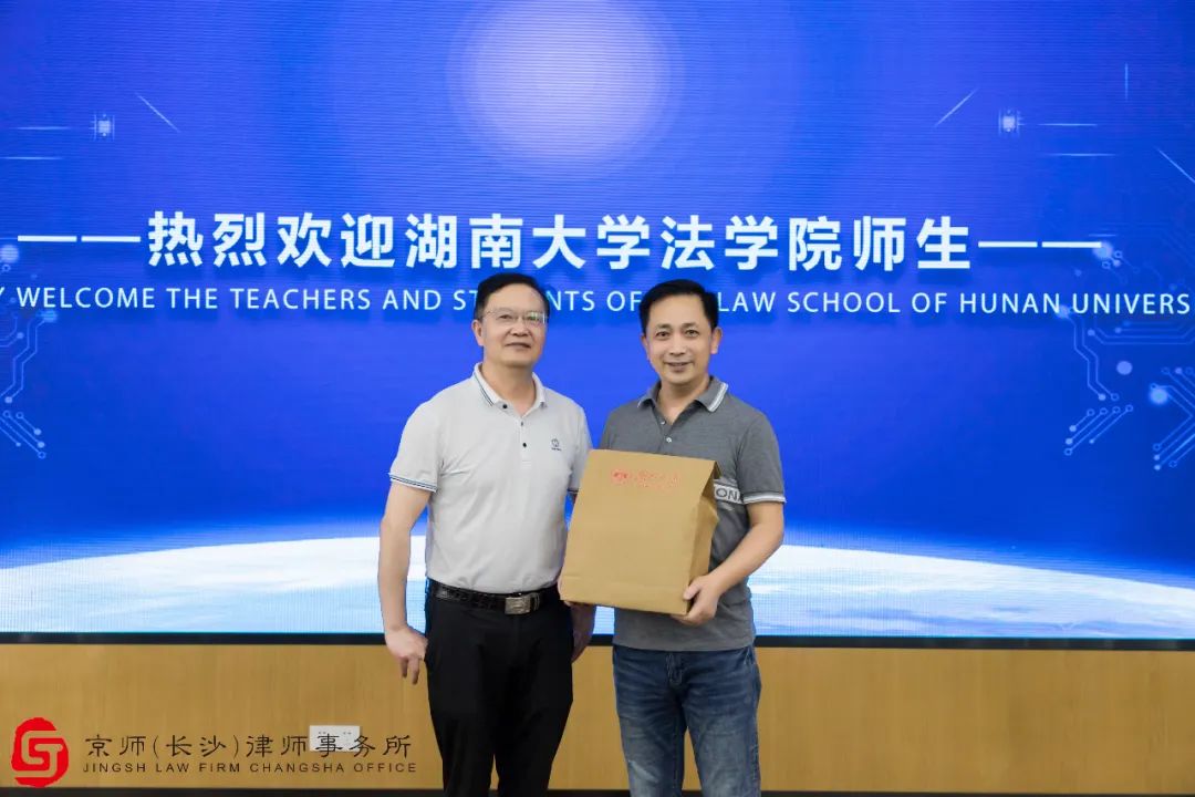 师生代表向北京市京师(长沙)律师事务所赠送岳麓书院文创产品,活动至此圆满结束。此次参观学习,对同学们而言是一种沉浸式的体验,让大家对律所的文化理念、经营模式等有了新的认识,并拓展了同学们的职业视野,为博彩平台
