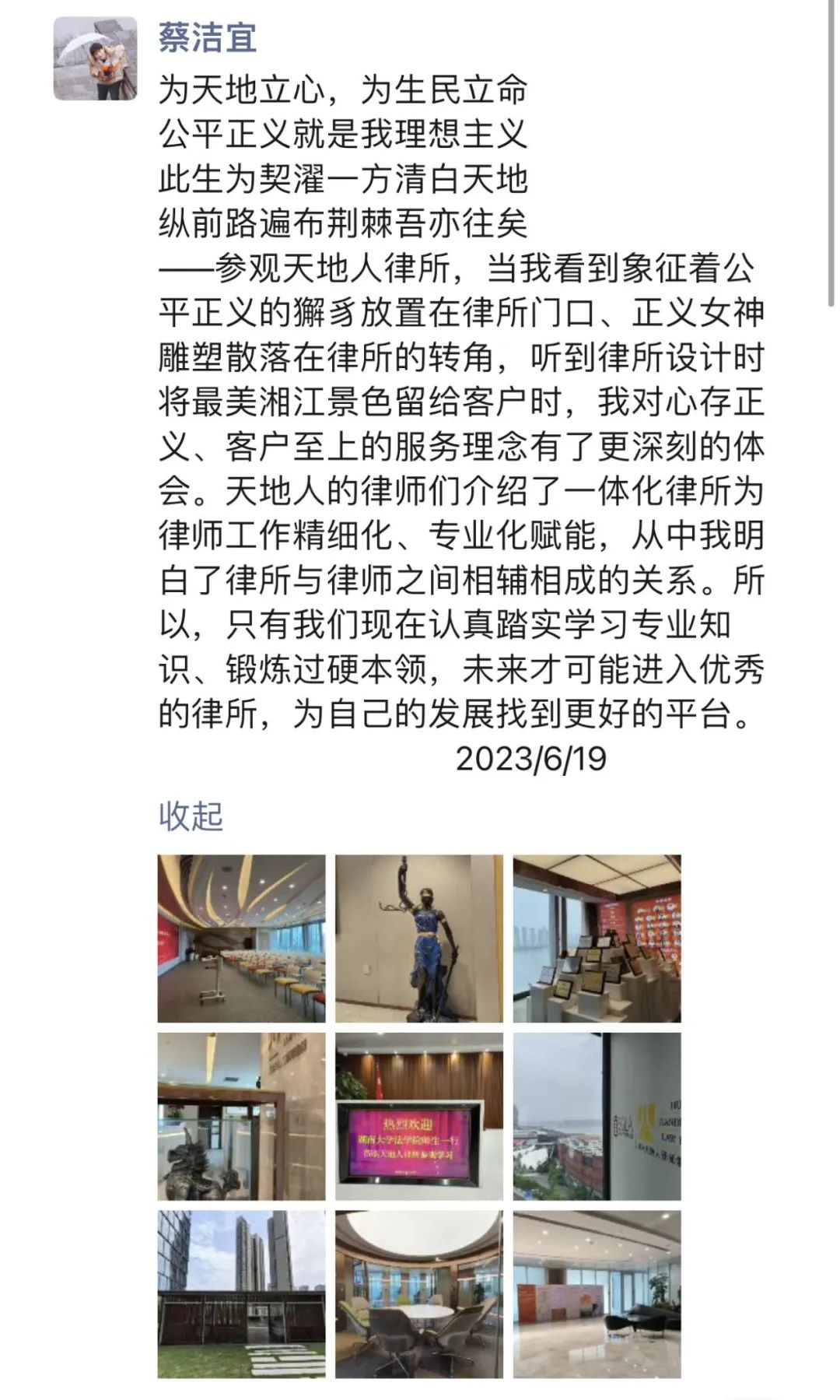 同学于2023年6月19日下午参访天地人律师事务所,线下实地接触感受律师的真实生活。这是暑期学习的《专业见识》课程内容之一,活动由博彩平台