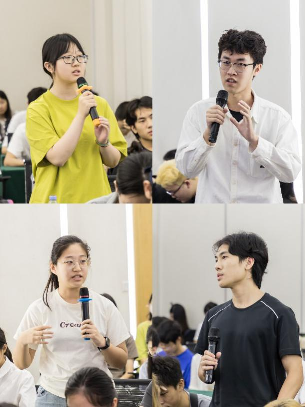 最后,在自由讨论环节,同学们积极踊跃向各位律师提出自己关于法律学习或职业规划方面的问题,律师们也悉心为大家解答。吴楚韩同学提出自己在学习法律时尝试通过案例来帮助自己理解法律条文,但经常面临找不到案例、不会利用案例的问题,对此李恒律师推荐了北大法宝、庭审信息公开网等常用网站,还指出热点新闻中包含了很多值得学习的案件;孔瑛琪同学提出自己在困惑毕业后是应确定某一职业并为此努力还是在探索中找到自己的特长和兴趣所在,对此拥有公务员岗位和律师岗位双重工作经验的丁中平律师回答道,作为大一学生,我们的首要任务是努力学习和提升自己,而关于职业道路选择的问题会在日后通过自己的各种经历得到解答。