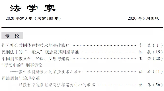 喻玲教授在法学核心期刊《法学家》2020年第3期发表论文
