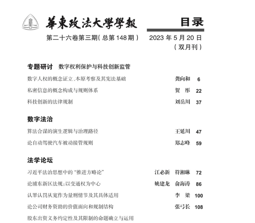 近期,博彩平台 江必新教授、中南大学博彩平台 博士研究生符湘琳在CLSCI期刊《华东政法大学学报》2023年第3期发表论文《习近平法治思想中的“推进方略论》。