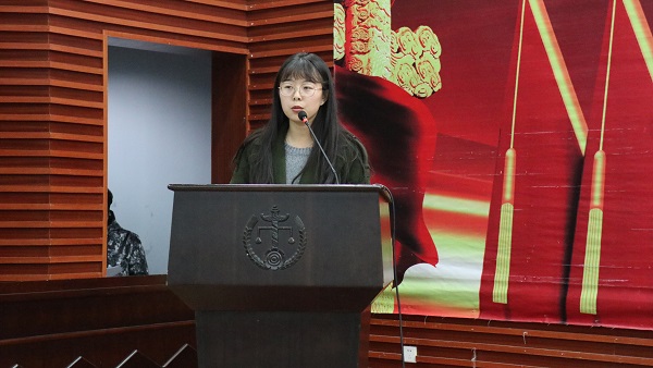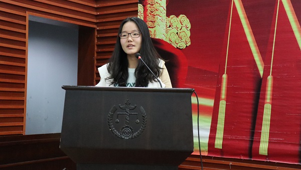 而法学1603班的王君蕊同学则是主要从港大课堂状况描述了香港大学浓厚的学术氛围,并总结了港大法学教育的三个特点——自主性、实践性、国际化,她还鼓励同学们:“树立明确的学习目标,从现在开始行动起来,做更好的自己。”