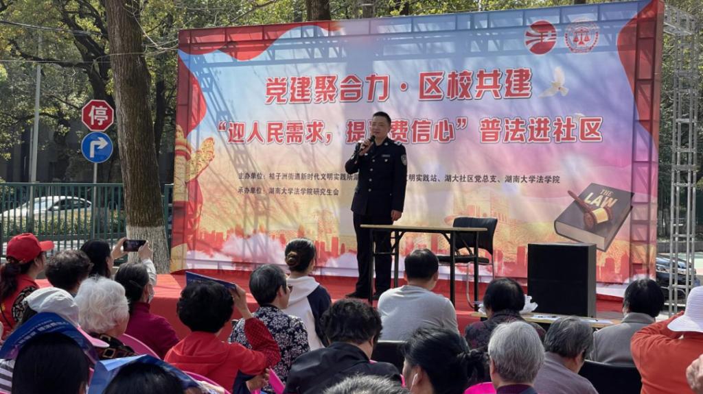 党务与学生工作办公室主任,研究生辅导员刘岳峰老师、辅导员谷雨老师,并邀请了湖大社区居民群众、党员、团员代表出席参加本次活动。