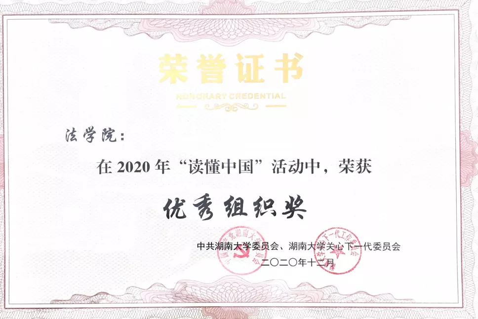获评优秀组织奖,多位2018级本科生获不同级别奖项。1805班陈宇阳征文作品《拥法治强国梦想 踏复兴之路前行》获教育厅三等奖及博彩平台