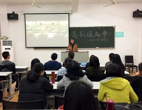 电影结束后,同学们就自己的观影感受,结合自己近期的学习状态进行了发言。郑维琪同学认为,人不会停止发展,所以也不会停止接受教育。接受教育,不是每天坐在教室里被动接受老师的讲授内容,也不是机械的做笔记,而是真正调动内心的学习动力,让自己的灵魂成长、自由。黄怡婷同学对此表示赞成,随后说到:“学习不是苦差事。知道原本不知道的东西,发现原先没发现的事物,这是何等有趣的事情。为什么非要苦着脸去读书呢?”在发言结束后,学习委员魏晓虹同学进行了总结。她鼓励大家寻找属于自己的学习方法,明确目标并为之付出行动,做好自我管理。