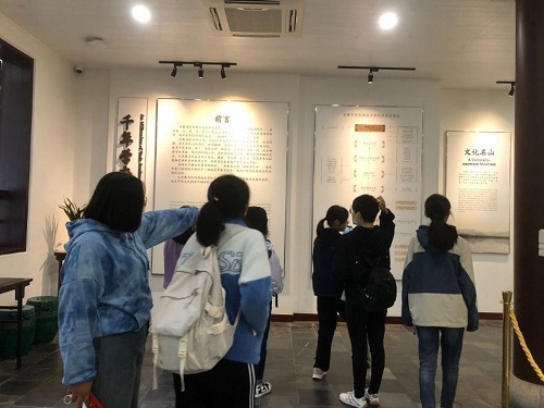 同学们在书院博物馆中仔细参观、认真聆听团支书的讲解和介绍。站在博物馆的玻璃展台前,同学们驻足停留,静静欣赏陈列在眼前的文物,细细阅读旁边的解说词。前往文庙时,书院里淡雅的的白墙灰瓦默默隐去,华丽的朱墙黄瓦赫然出现。在路经孔子像、踏入大成门之时,同学们的心灵都经历了贤关圣域的洗礼,脚步都不由得变轻变慢了,神情也变得更加严肃起来。