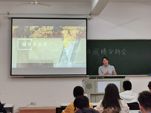 会议开始,班长张致豪对上学期的班级成绩进行总结汇报。张致豪将总体情况概括为“零挂科人数可圈可点、乏拔尖同学值得重视”,并逐一分析各门课程的平均分、高分层、低分层的状况。