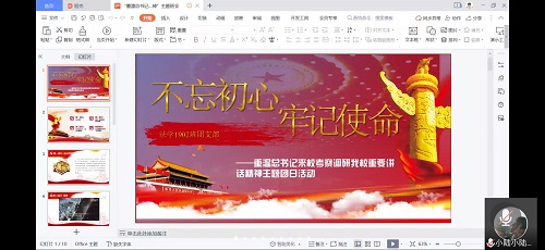 法学1902班团支部成功组织召开“重温总书记来我校考察调研并发表重要讲话精神”主题团日活动。由于疫情防控需要,本次主题团日活动采用线上会议的形式。