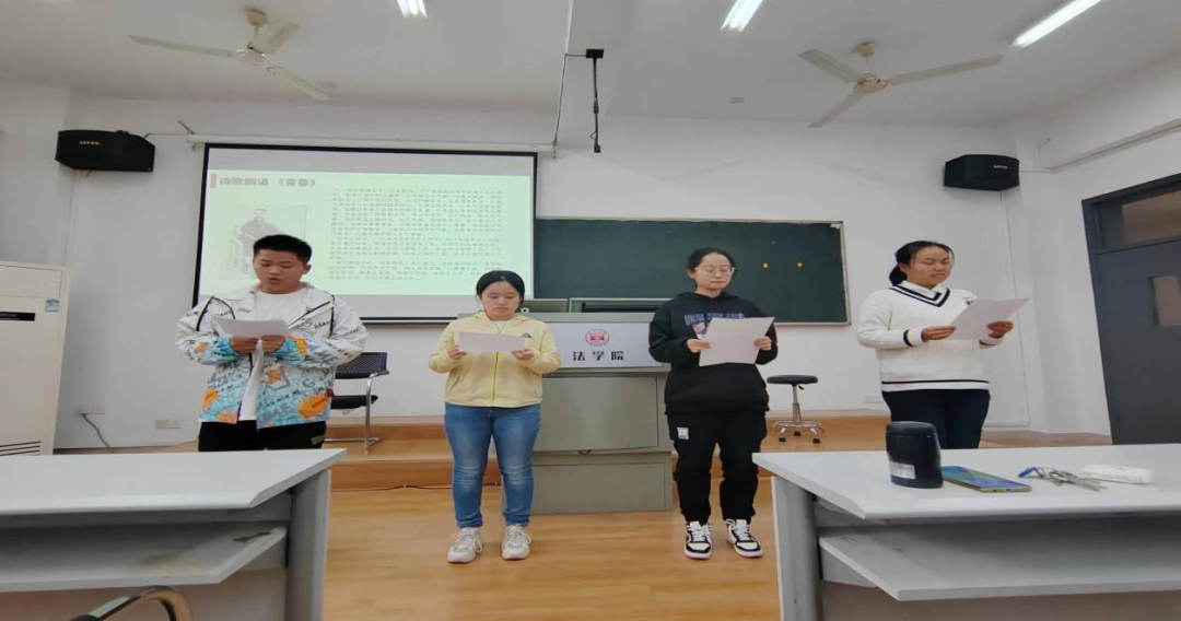 班会开始,孙方怡、曾佳怡、沈雨鑫和陈航同学声情并茂地朗诵诗歌《青春》,让大家深切地感受到了李大钊先生对中国青年的勉励与祝福,激励同学们为心中远大理想而不懈奋斗。
