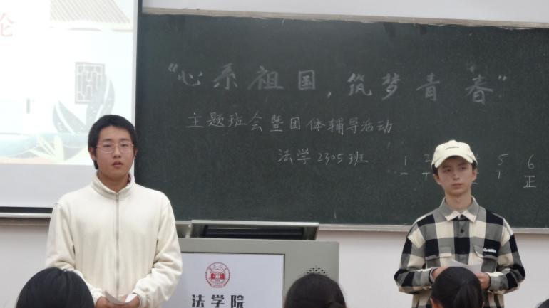 (法学2305班团支书张宙和活动委员吴克共同主持)