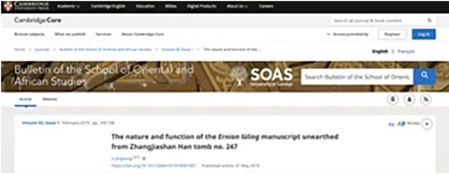 2019年,李婧嵘以独立作者所著论文The Nature and Function of the Ernian lüling Manuscript Unearthed from Zhangjiashan Han Tomb No. 247被创刊于1917年的国际顶级综合性期刊Bulletin of the School of Oriental and African Studies录用发表。该杂志由剑桥出版社出版,是已有百年历史之久的顶尖综合性学术期刊,主要发表亚洲、非洲和中东地区的人文、历史、艺术研究的学术论文。李婧嵘的论文以1983年底出土于湖北江陵地区张家山247号汉墓的法律写本《二年律令》为例,研究了出土于墓葬之中的秦汉法律写本的性质与功能。该研究是博彩平台