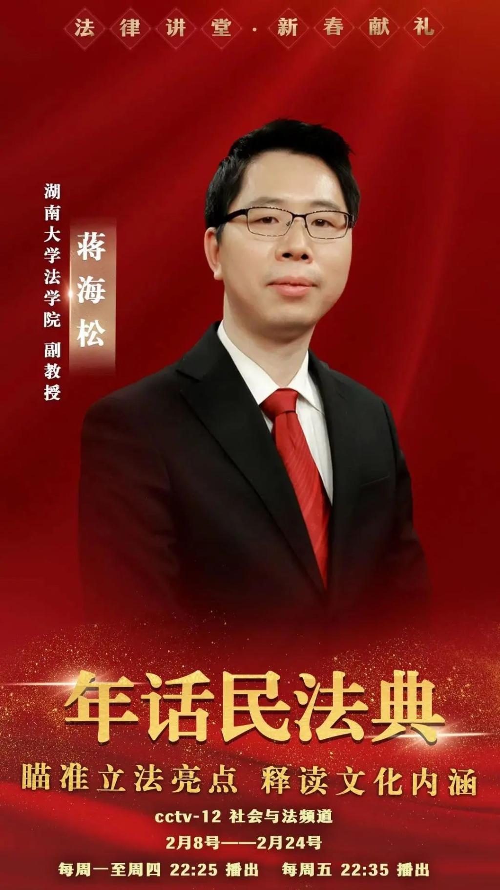 (蒋海松老师在央视开讲,海报来自CCTV《法律讲堂》栏目组)