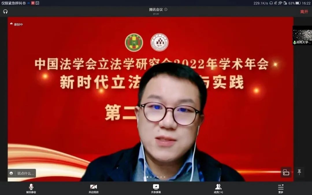 助理教授周宇骏老师的论文《授权改革试点立法条件成熟的学理诠释》在本次研究会中荣获青年论文二等奖。其围绕着《立法法》第13条所规定的授权改革制度的优化进行了专题汇报,阐述授权改革试点立法条件成熟的判断标准,为《立法法》的合理修改与试点法治的实践优化提出智力支持。