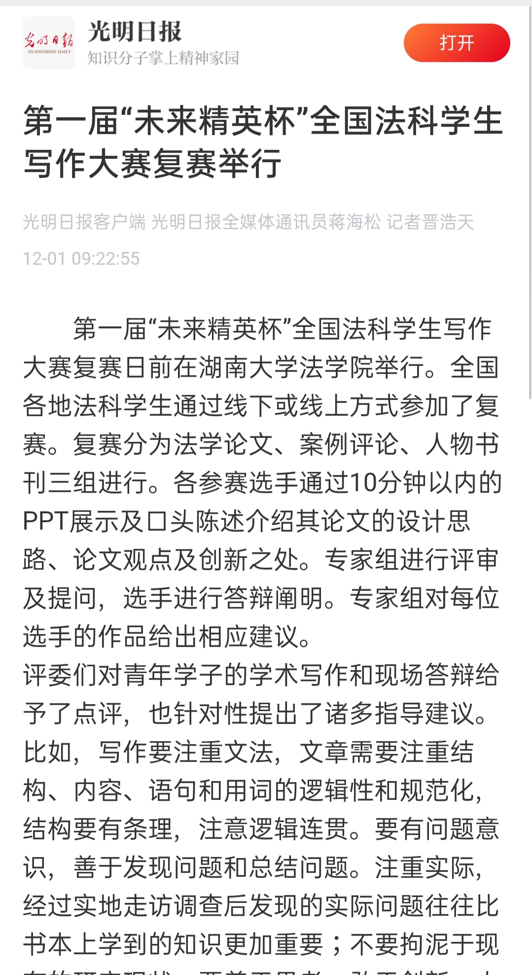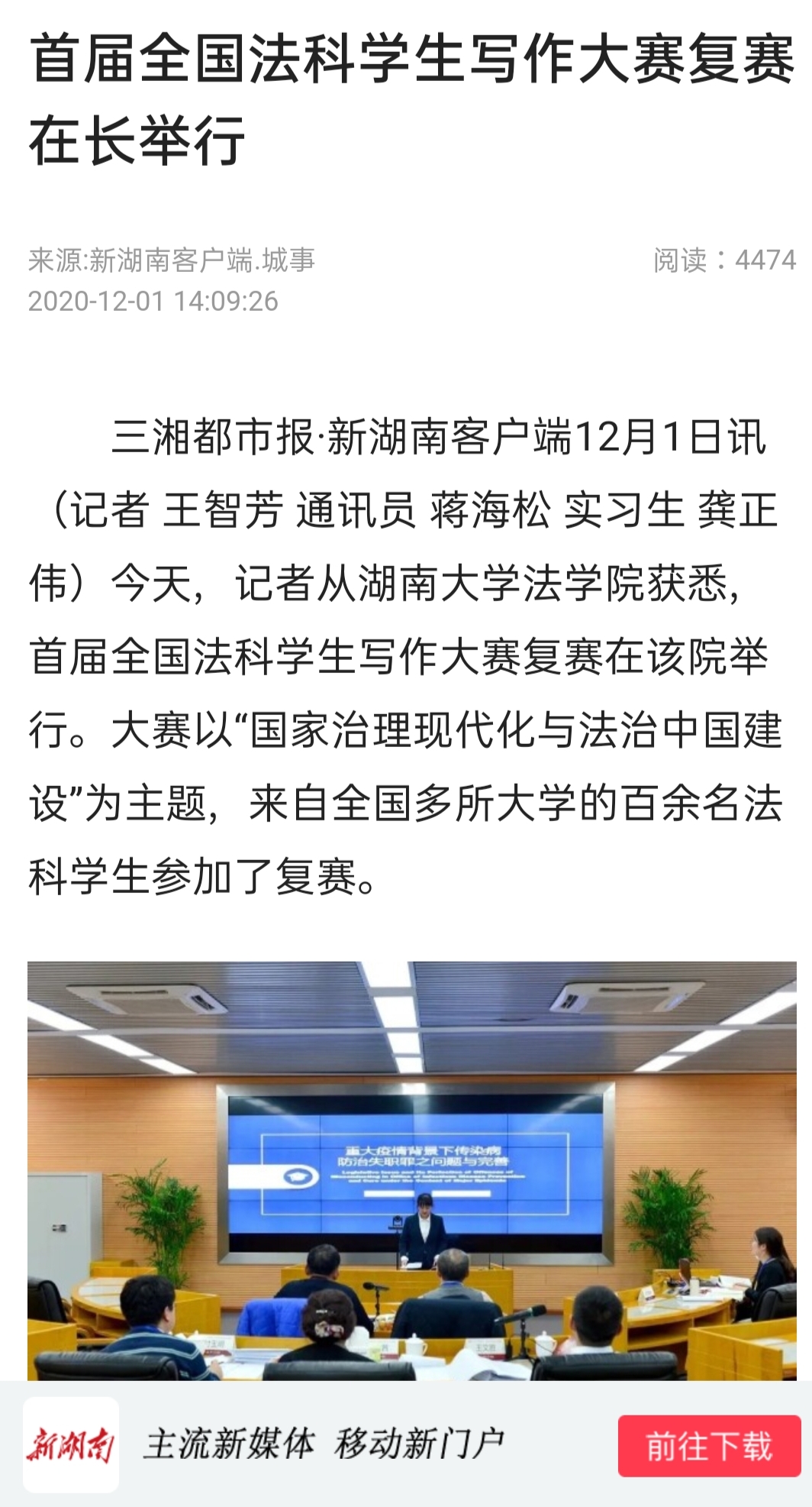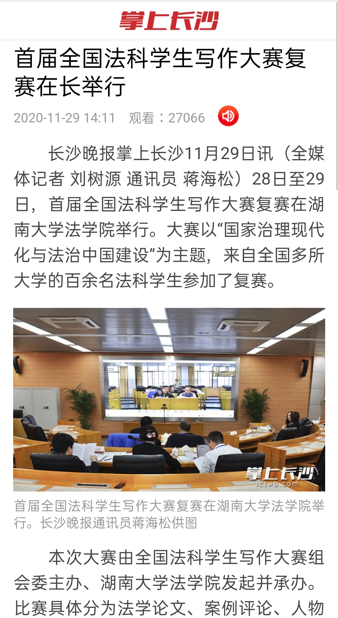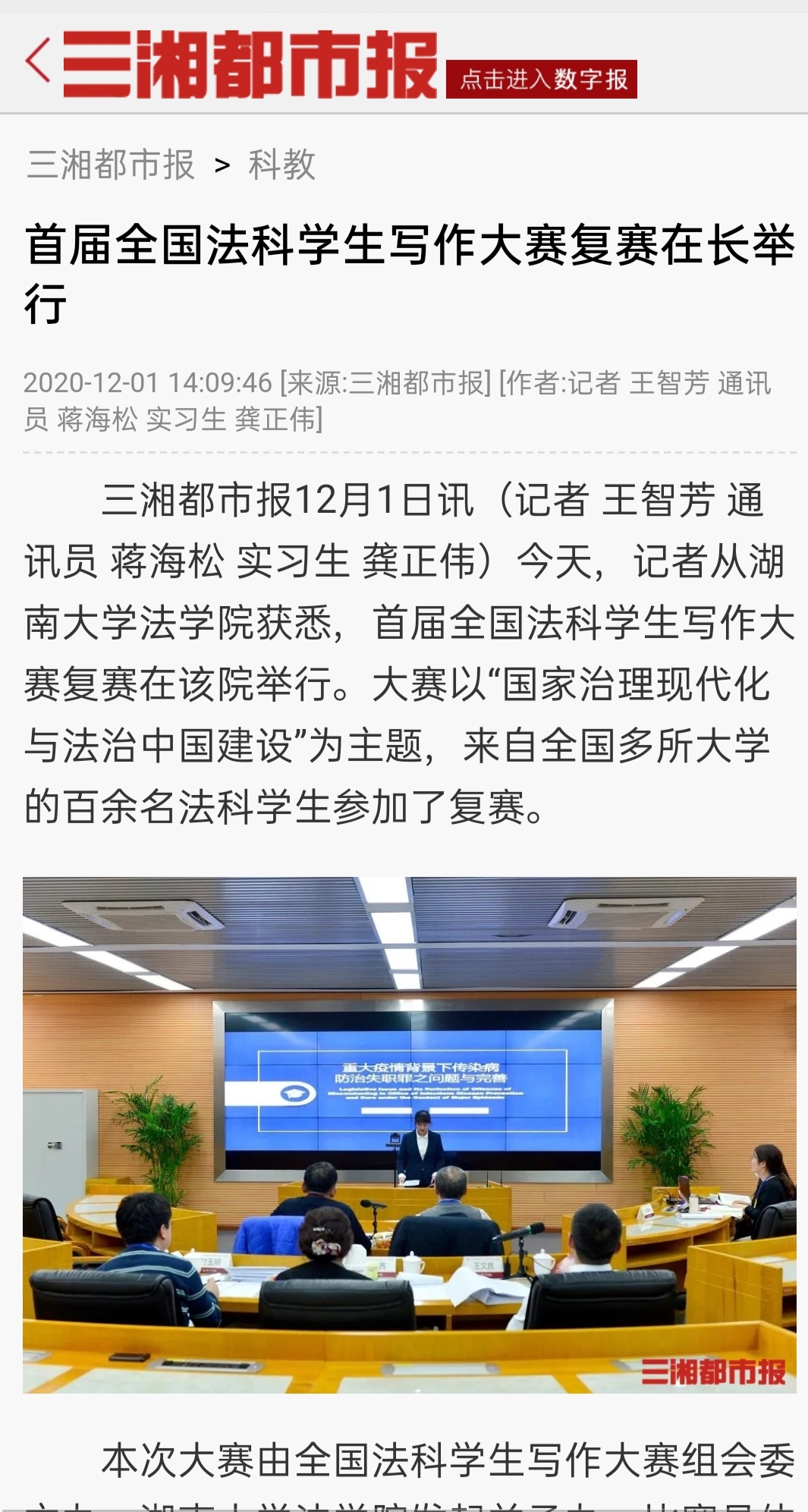 “全国法科学生写作大赛”复赛的成功启动引发全国媒体密集报道。据不完全统计,已有中国新闻网、《光明日报》、法制网、正义网、《法治周末》、《法制周报》、《长沙晚报》、《三湘都市报》、新湖南客户端、红网、腾讯网、华声在线、掌上长沙、博彩平台