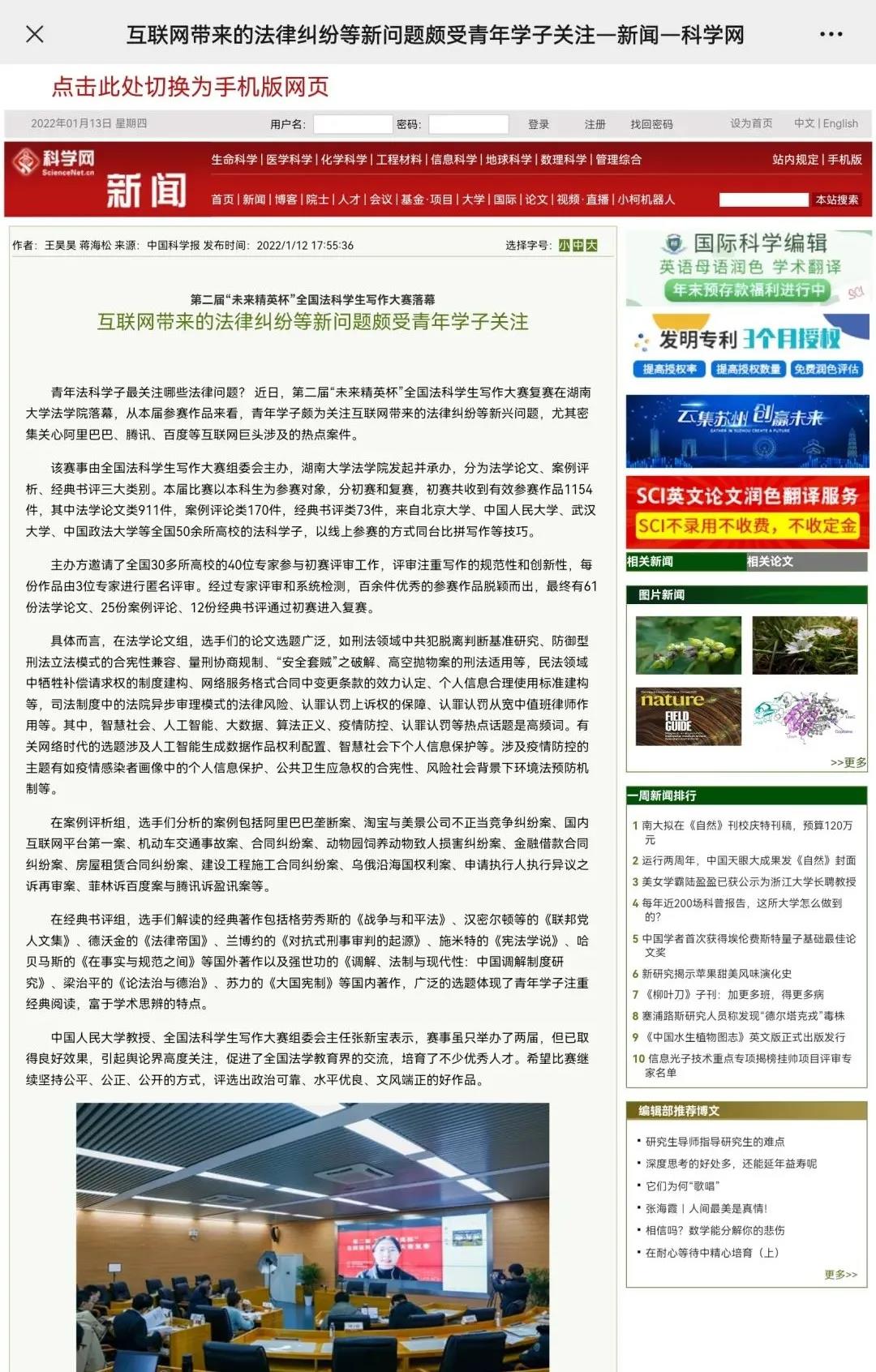 落幕,从本届参赛作品来看,青年学子颇为关注互联网带来的法律纠纷等新兴问题,尤其密集关心阿里巴巴、腾讯、百度等互联网巨头涉及的热点案件。