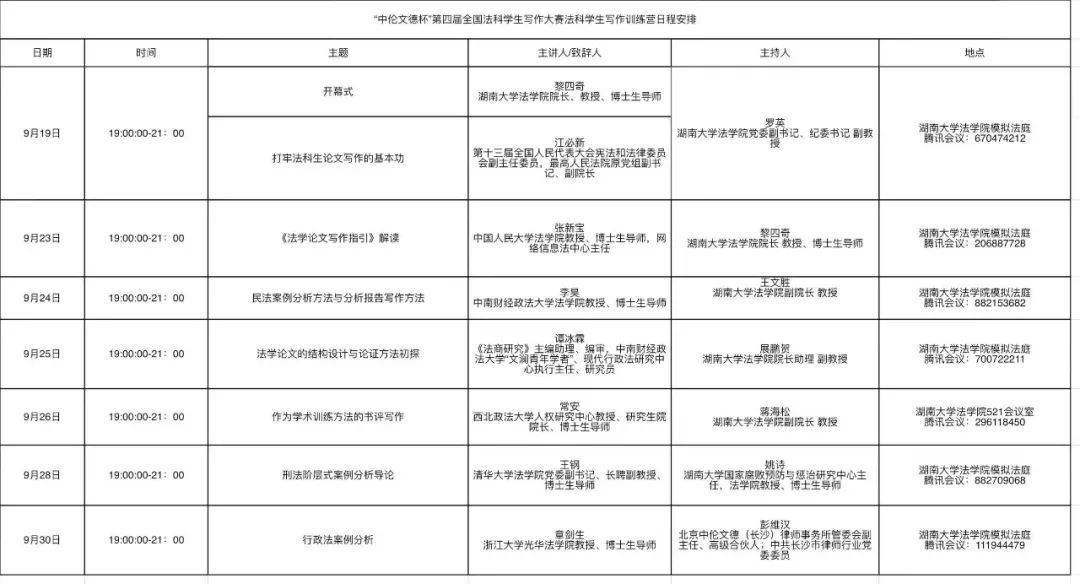 “中伦文德杯”第四届全国法科学生写作大赛法科学生写作训练营日程安排