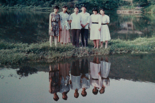 财院校园清澈的水面留下了即将毕业的我们的声影