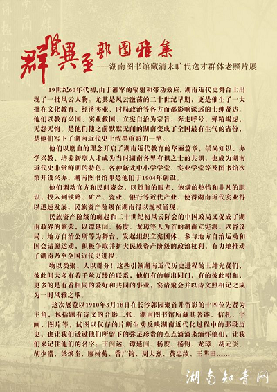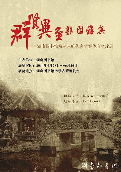 2014年湖南图书馆举行《群贤毕至郭园雅集》的展览,以上为海报图片及《潇湘晨报》报道。