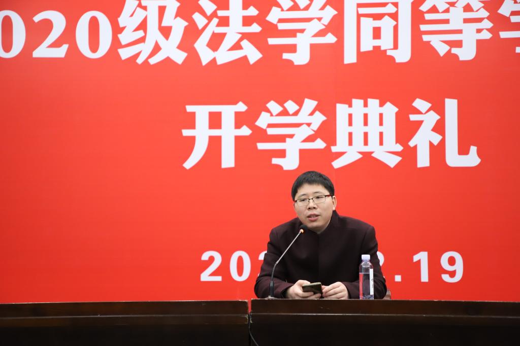副教授蒋海松应邀出席。同等学力办公室各职能负责人及20级新生悉数参加。开学典礼由申硕办张娜老师主持。