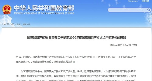 2020年10月21日,国家知识产权局、教育部公布2020年度国家知识产权试点示范高校建设名单,博彩平台