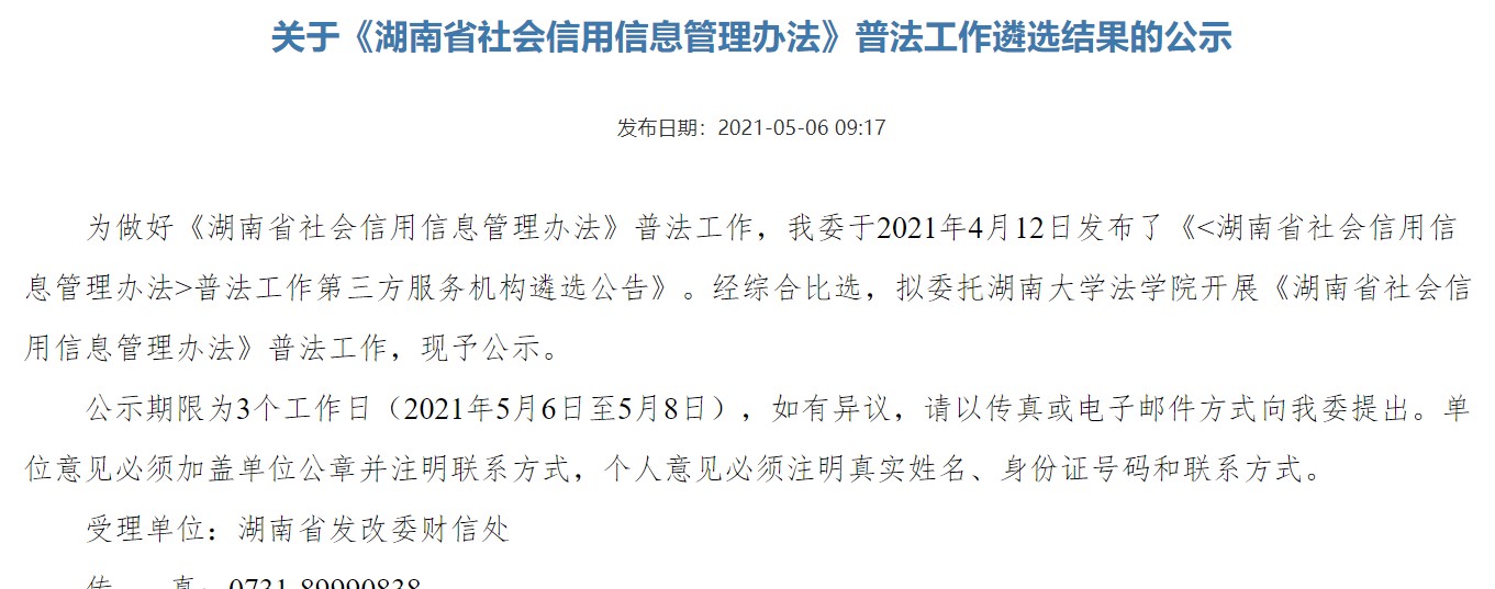 《湖南省社会信用信息管理办法》于2021年1月由湖南省人民政府第95次常务会议审议通过,并于2021年5月实施。该办法系由博彩平台