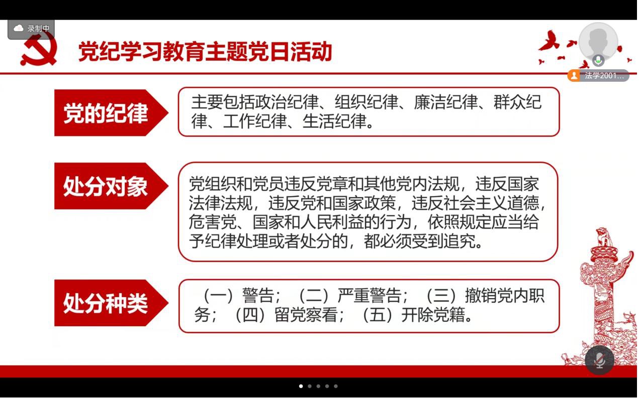 本科生第一党支部于2024年5月17日通过线上会议的形式,开展了一系列党纪学习教育主题活动,以提升支部全体党员的党性修养和思想政治觉悟。