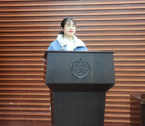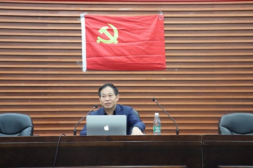 随后,易骆之书记担任主讲人,为学员讲授主题为“党的光辉历程——中国共产党党史及其成就”的专题党课。易书记从新民主主义革命时期、社会主义革命和建设时期、改革开放和社会主义现代化建设新时期三个阶段和大家一起回顾党的光辉历程,让在座的同学对党的光辉历程认识更为深刻。他指出,依法治国是中国共产党领导全国各族人民治理和建设国家的根本保证,作为未来法治栋梁的各位同学,一定要认真完成专业学习任务,牢记总书记嘱托,不负青春,不负韶华。