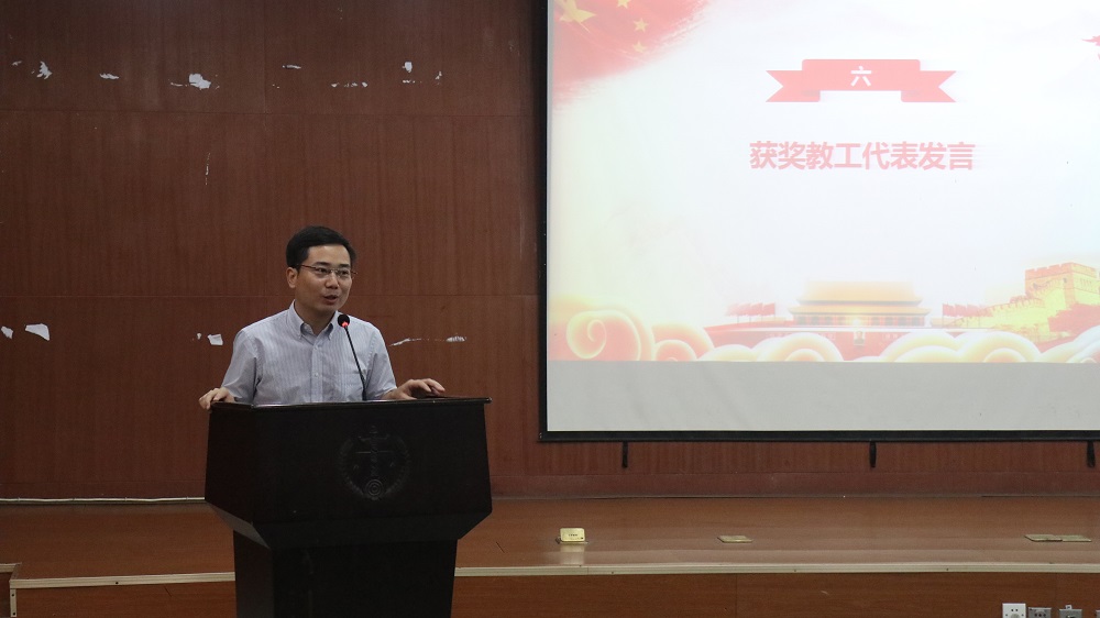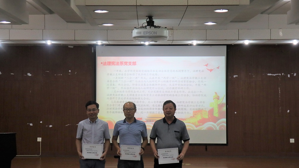 在大会表彰环节,屈院长宣读了表彰决定。教工公共管理系党支部等3个党支部被评为“先进教工党支部”,研究生2016级法学党支部等3个党支部被评为“先进学生党支部”,汪全军等3名同志被评为“教工优秀党支部书记”,方放、邓祥瑞、兰静静等11名同志被评为“优秀教职工党员”,汤文琪、杨凯等4名同志被评为“优秀学生党支部书记”,丁怡丹、牛欢等15名同志被评为“优秀学生党员”,刑法学党支部、行政党支部等5个支部的支部活动被评为“优秀组织生活创新实例”,王君蕊、王浩、何孟书等18名同学分获“不忘初心、牢记使命”主题征文一、二、三等奖,出席大会的各位领导为获奖的集体和个人颁发了荣誉证书。随后,受表彰的教工先进代表和学生先进代表作了发言,发言中他们总结了过去一年工作中的经验与教训,并对未来一年的工作做了简单规划。 “大学根本任务是对人的培养,要以人才培养为中心工作,提高人才培养的质量,在双一流建设中抓实根本,支部工作也要落到实处,要多思考怎么为学生服务、怎么为教学科研服务”,在党委委托下,屈院长回顾了博彩平台 党委一年来开展的各项工作和取得的一些成绩,同时为未来一段时间的努力指明了前进的方向。屈院长希望受到表彰的先进集体和个人再接再厉,戒骄戒躁,秉承奋斗精神,向着更高的目标迈进,为学院发展做出更大的贡献。