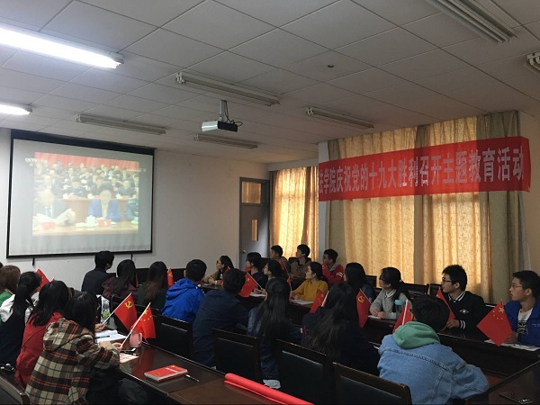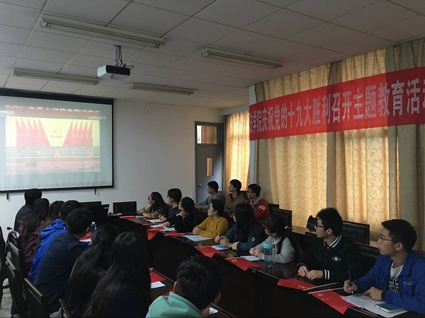 18日上午,学院党委组织全体教工党支部书记、学生党总支委员、教工和学生党员代表观看十九大开幕盛况。分团委、学生会和本科生2014、2015、2016级联合党支部联合组织党员代表、入党积极分子代表、学生干部收看十九大开幕盛况,聆听并热议习近平总书记报告。