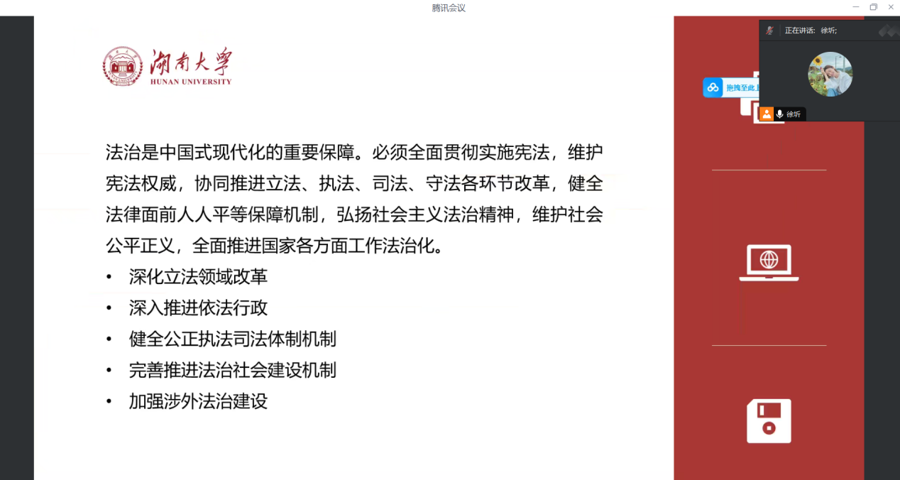 研究生2024级法学硕士党支部于9月22日通过线上会议的形式,开展了“学习党的二十届三中全会精神”主题党日活动。活动由党支部书记徐圻主持,支部全体党员同志参加。